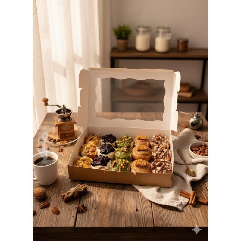 من أول رولات السينامون الطرية اللي ريحتها تملأ المكان، للدونتس المحشية والمزينة بكل حب، لحد الكب كيك اللي مزين بالورود و بيذوب في الفم والكحك اللي طعمه بيرجعك لأحلى ذكريات العيد.
